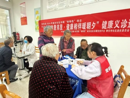 春风送暖,健康相伴。为深化“多元共治”格局,凝聚居民共治共建合力,切实提升社区居民健康水平,并为辖区居民提供便捷优质的医疗服务,打通便民服务“最后一公里”,4月2日,在中共旺苍县委社会工作部、旺苍县“创特色”城乡社区治理支持平台的支持下,白水镇静乐寺社区携手东洛社工与广元爱尔眼科医院开展“公益义诊惠邻里·健康相伴暖朝夕”健康义诊进社区暨便民服务活动,将健康义诊、便民服务和民意征集三大服务融为一体,把暖心服务送到居民家门口。